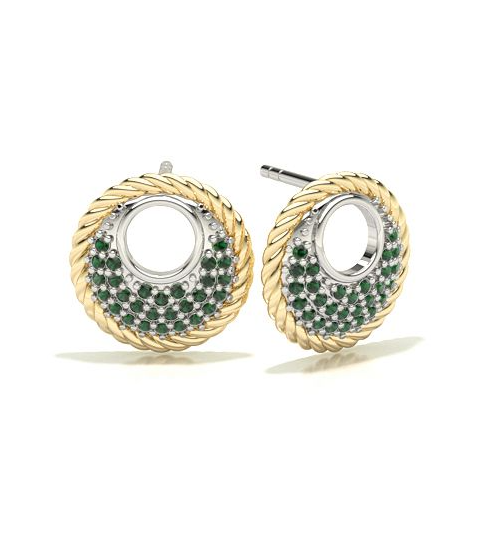 Round Shape Two Tone Gold Emerald Stud Earring