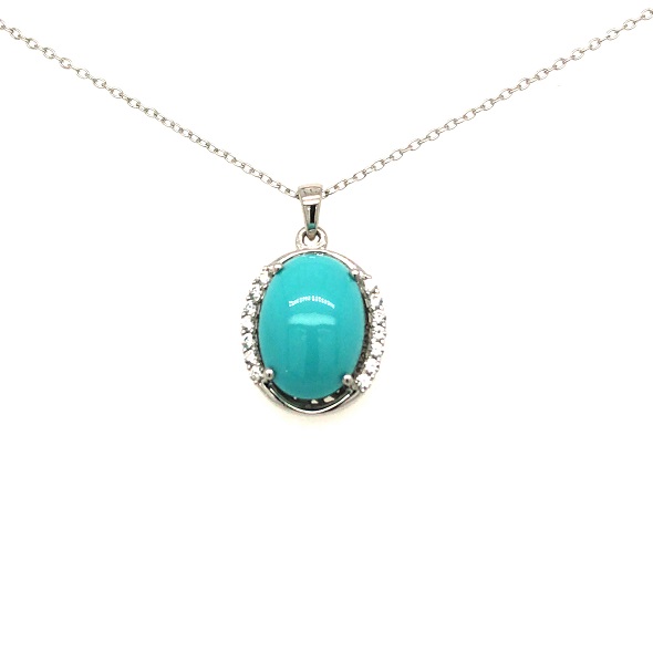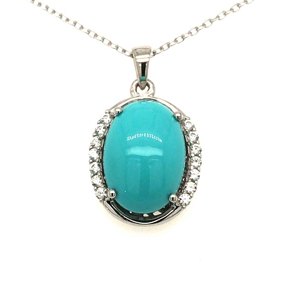 Turquoise Stone & Zircon Silver Pendant With Chain